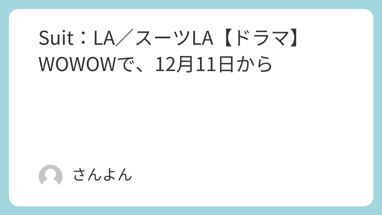 12月は今の段階で2作品、WOWOWで放送スタートのものがあり。。。