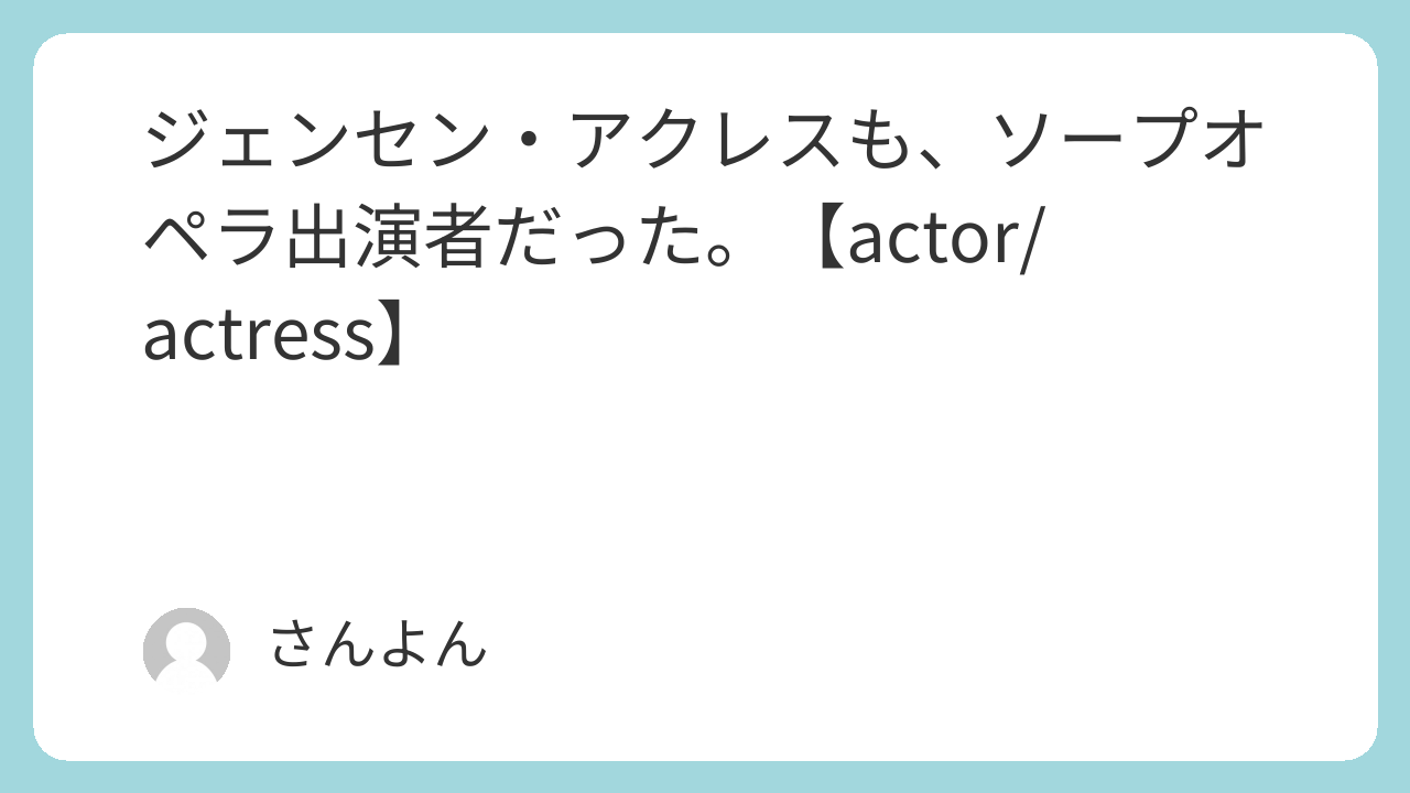 ソープオペラ出身の役者さんは、