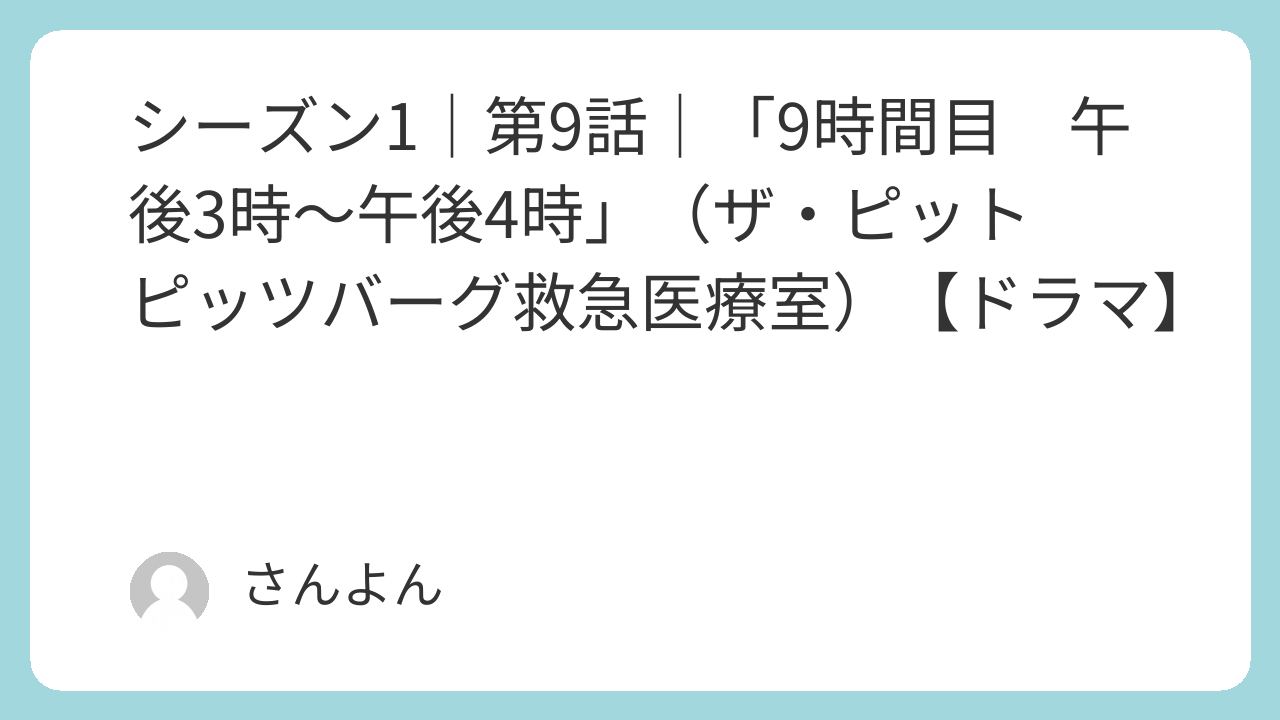 どうしても「ER」がよぎったりします。