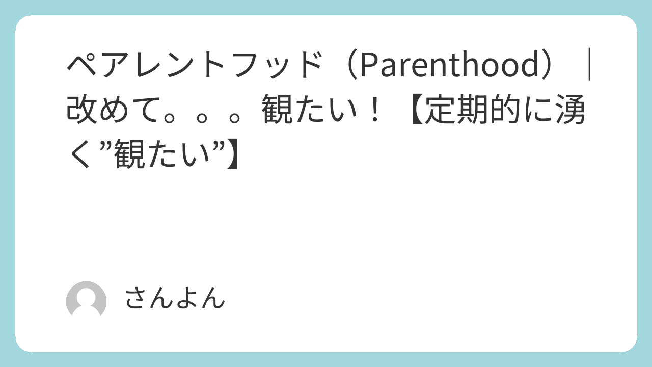 ペアレントフッド。観たいです。