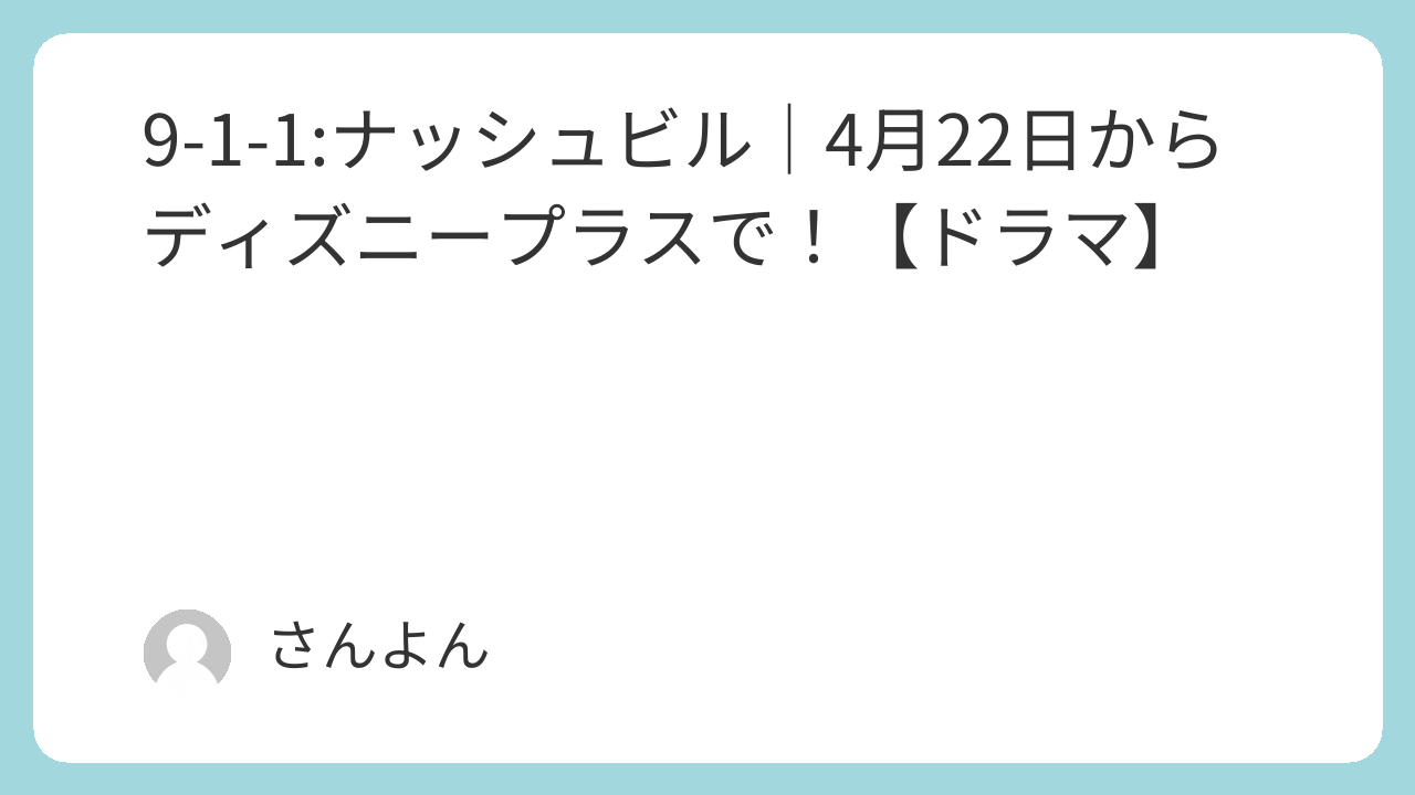 9-1-1:ナッシュビル│4月22日からディズニープラスで!【ドラマ】 海外ドラマ X Facebook はてブ LINE コピー 2026.04.12 ※本記事にはアフィリエイトリンクが含まれています。 「9-1-1」のフランチャイズドラマ、 「9-1-1:ナッシュビル」が、 4月22からディズニープラスから配信スタートということで。。。 ありがとうございますです(うれし泣) 新たな物語が日本上陸!『9-1-1: ナッシュビル』ディズニープラスで独占配信決定!世界中で圧倒的な人気を誇るレスキュー・ヒューマンドラマシリー ... 主演は、クリス・オドネルで、「NCIS:LA」以来の、連ドラですかね。 追いついたところで・・・「NCIS:LA」最近かなり私の中で、「NCIS:LA」の視聴に割く時間が増えていました。もう終了しているシリーズだというのに。。。そして、この秋から、クリス・オドネル(G・カレン役)は、「9-1-1ナッシュビル」で新しいキャラクターなのに、今かい!ですが。... こういう新しいドラマの配信情報に、「もうちょっと生きていよう」と思える(重い)、今日この頃です。。。 楽しみ! ここまで読んでくださってありがとうございます。 もしよかったら、そっと応援いただけると嬉しいです。 関連記事: 待ってたニュース(ウィル・トレント) 実は観てた「グッド・オーメンズ」 「ALERT」キャンセルなのか。 ペイシェンスとビー ヨーク警察文書係の事件録・・・観たい